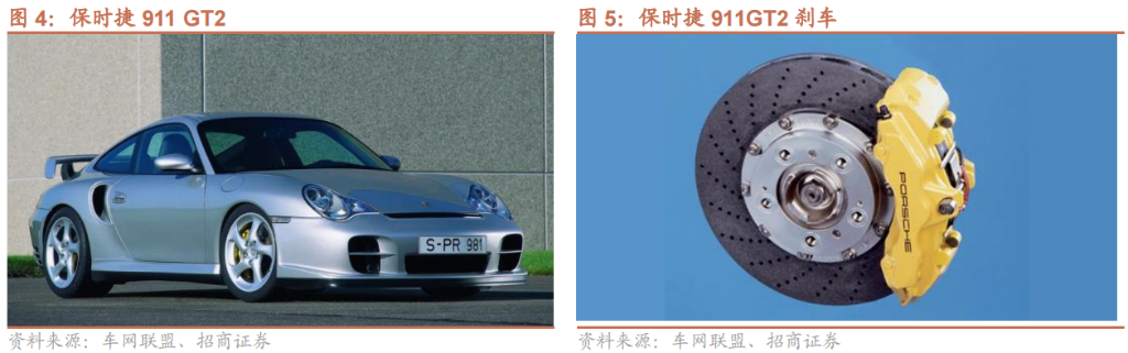 2、碳陶刹车盘优势较为明显,最早应用于豪华汽车