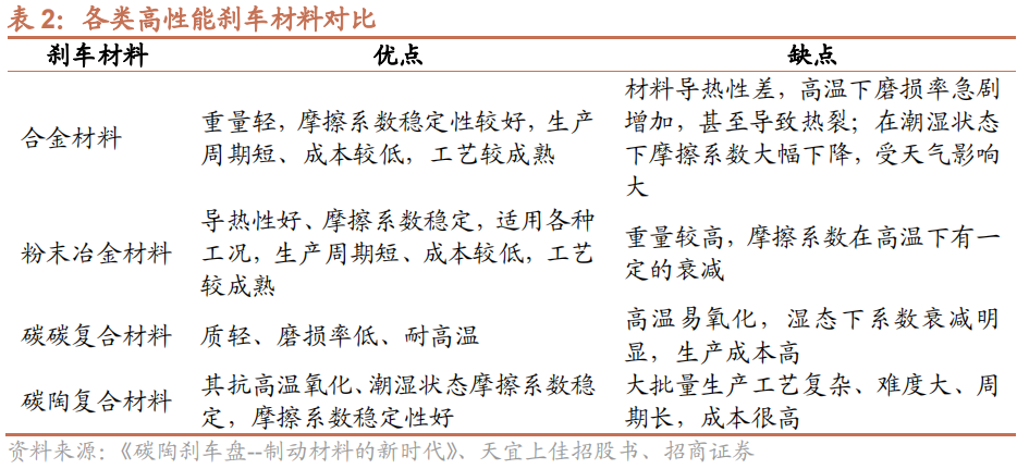 铸铁材料存在者制造周期长、导热性差和易产生热裂纹等不足,因此碳碳和碳陶复合材料为刹车材料的发展方向。
