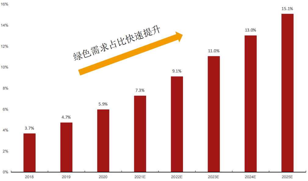 绿色需求占比提升显著