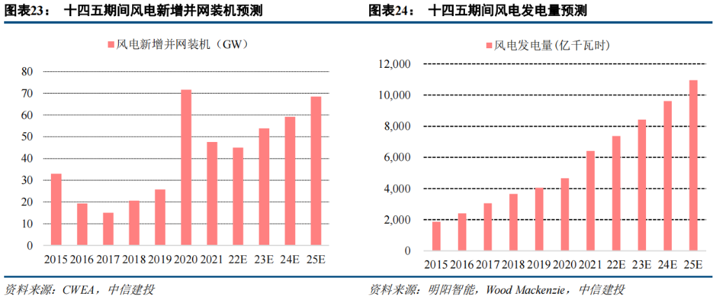 此前《玻纤系列报告二:掘金双碳政策的风电纱》报告中对十四五期间中国风电新增并网装机的