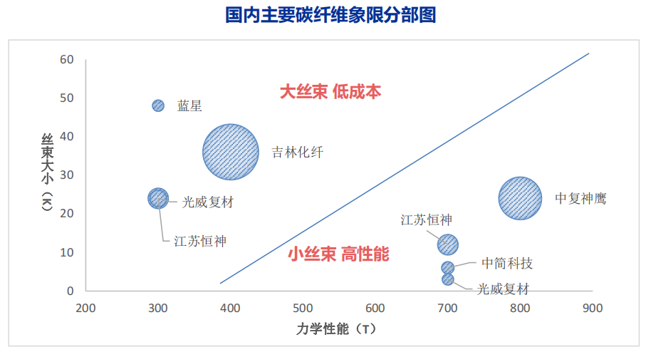 伴随我国氢能、光伏行业蓬勃发展,储氢瓶与单晶炉的火爆拉动小丝束需求持续放量,压力容器、碳/碳复合材料将成为未来几年驱动市场的重要引擎。不同于大丝束由于主要应用场景风电领域受海外装机扰动以及国内市场替代节奏不稳定等因素影响,下游需求存在不确定性,小丝束高确定性的下游需求增长使其相关厂商拥有更高估值。