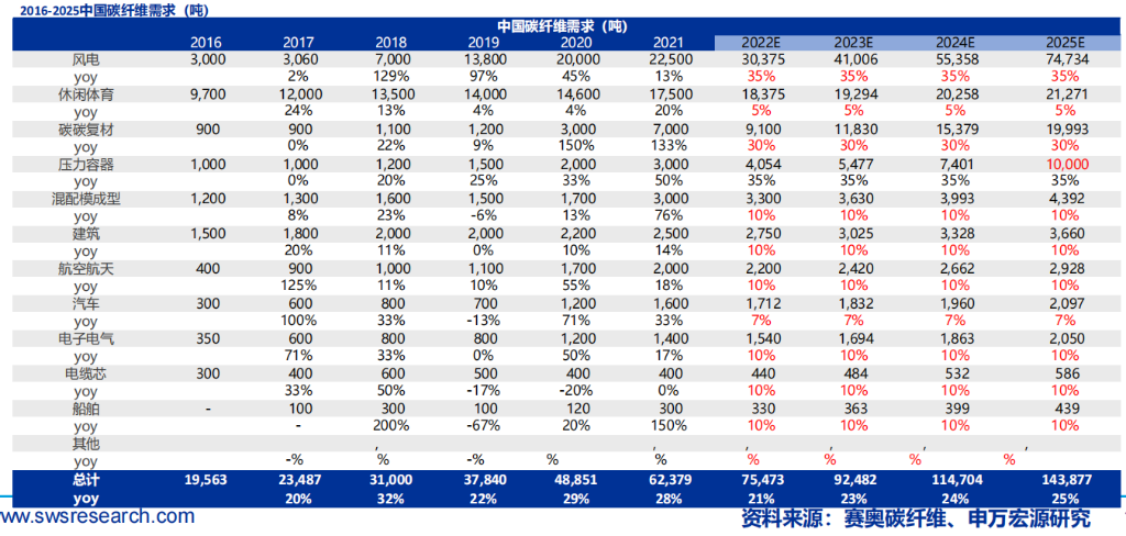非凡娱乐 对各个细分赛道分别测算增速,预计我国民用碳纤维需求将在25年达到14万吨需求,CAGR23%。