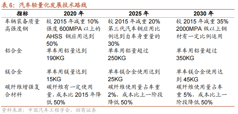 轻量化技术是未来汽车的重点发展方向。汽车零部件轻量化已经成为汽车节能减排最直接的解决方法之一。实验证明,汽车整车重量降低10%,燃油效率可提高6%—8%;汽车整车质量每减少100公斤,百公里油耗可降低0.3—0.6升。此外,伴随着新能源汽车的迅速普及,电动汽车对于续航里程的要求也更加迫切,在智能化网联化的趋势下,电动车增配了大量智能化设备,芯片、雷达、高清摄像头以及数据传输的线束等,都给电动车的“体重”增加了不小的负担,运用轻量化材料可以降低自身车重,在提升电动汽车性能的同时,实现节能减排。