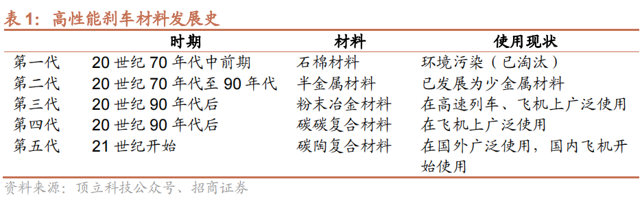 汽车和高速列车等现代交通工具的刹车材料经历了从石棉材料、半金属材料、粉末冶金材料到碳碳复合材料和碳陶复合材料的发展。
